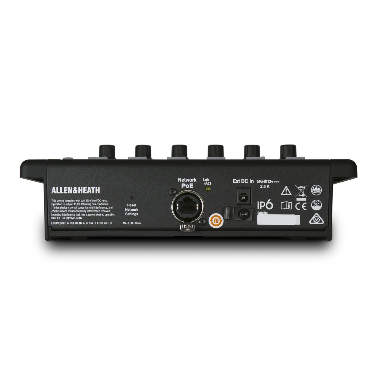 Se interconecta con el sistema de mezcla Avantis o dLive mediante conexiones de red TCP/IP estándar y puede conectarse en red con otros controladores, ordenadores y dispositivos de terceros mediante una infraestructura Ethernet estándar.
