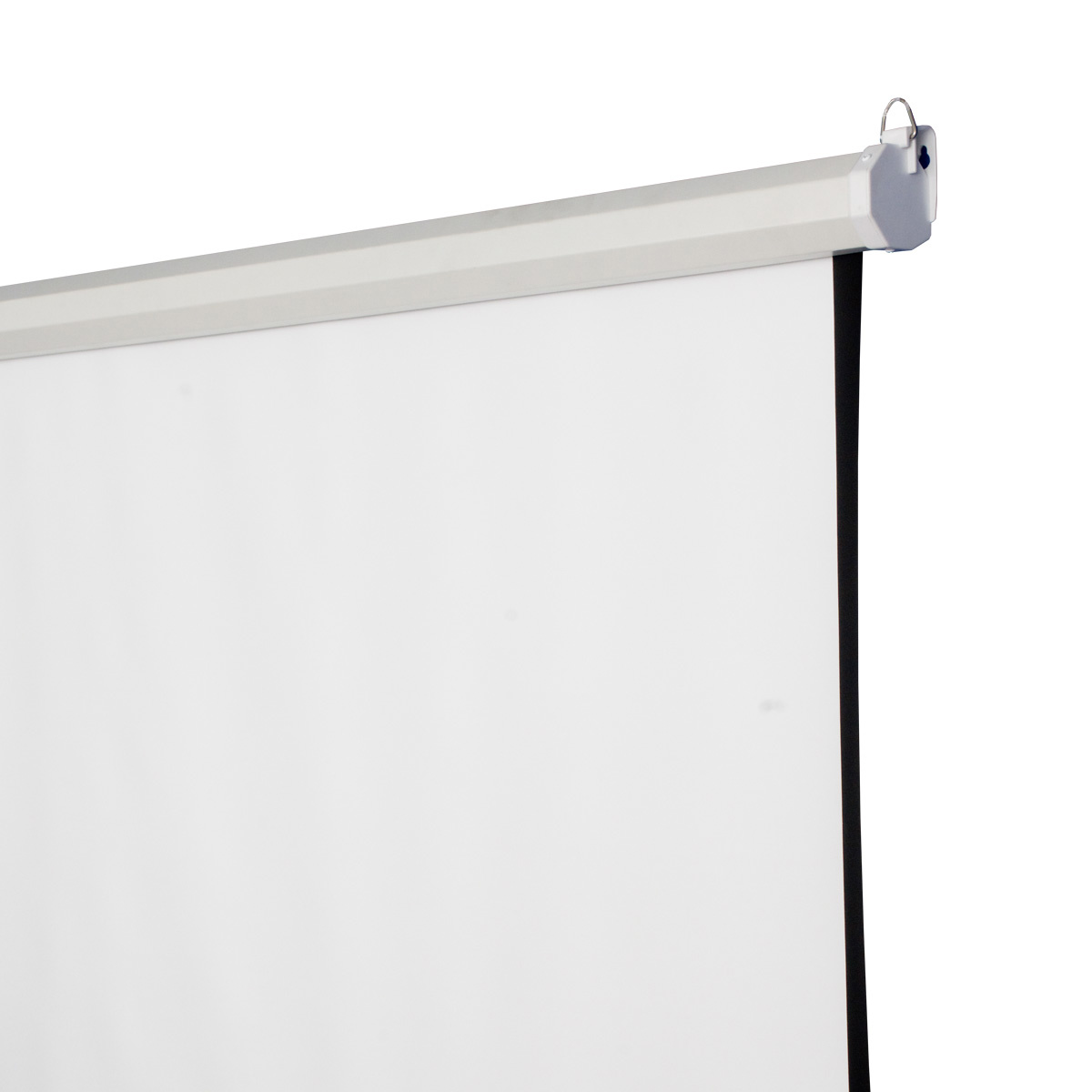Pantalla manual para montaje en techo o pared, mecanismo de retorno lento, carcasa color blanco hexagonal, superficie blanco mate plus (una superficie más gruesa y de mejor calidad), 2.03m de ancho x 1.52m de altura en el área de visión, 100” Diagonal, formato 4:3