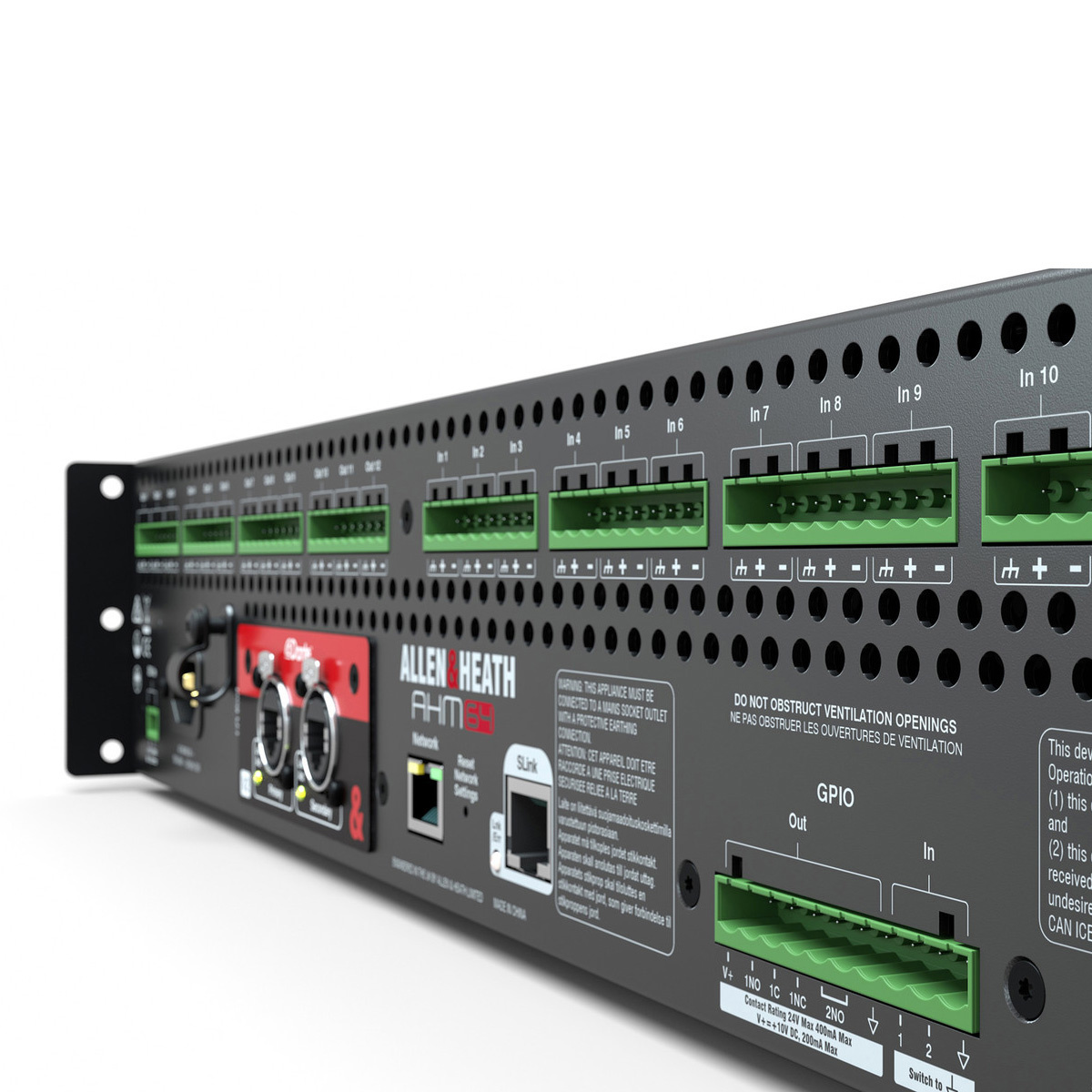 El procesador de matriz más potente de la gama, el AHM-64, puede escalarse a grandes instalaciones de campus con hasta 64 zonas, 96 controladores y cientos de E/S del sistema.