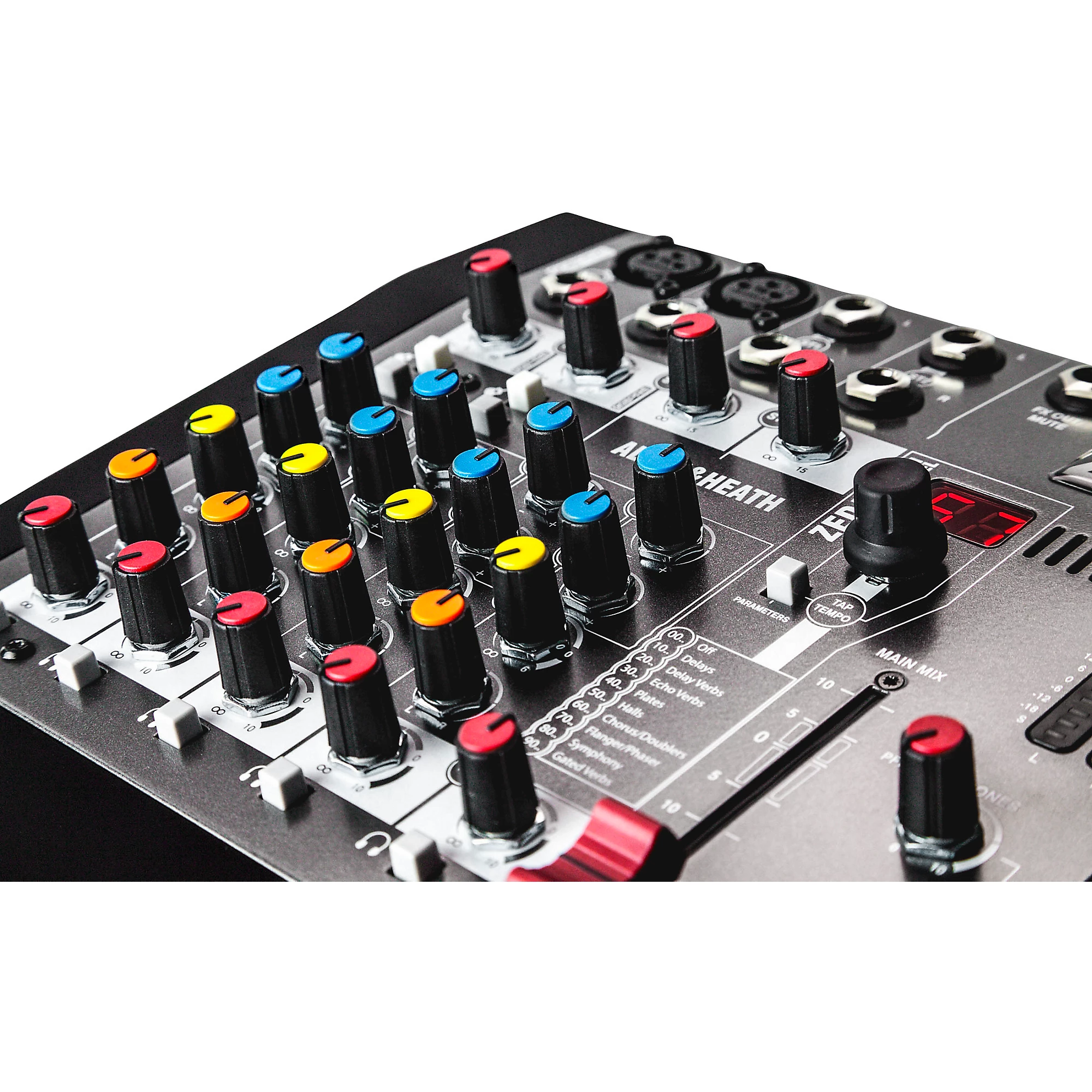 The A&H ZED-6FX includes a pair of high-impedance direct guitar inputs, allowing you to plug electric guitars directly into the mixer without the hassle and expense of separate DI boxes. The A&H ZED-6FX is the ideal choice for musicians, singer-songwriters, and small venues seeking quality.