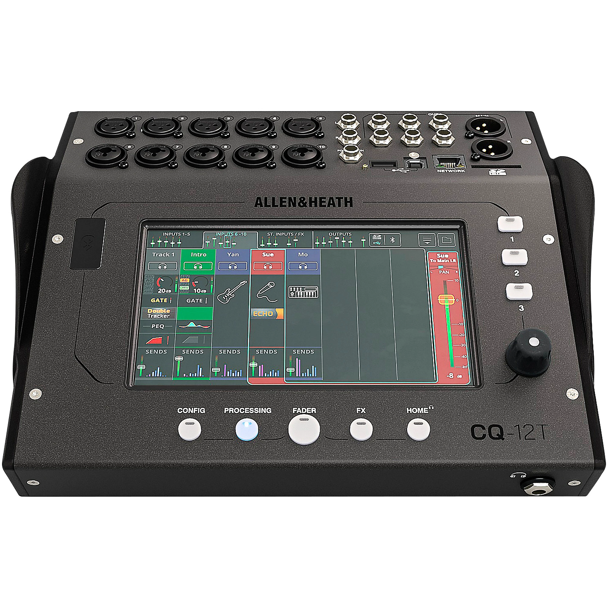 CQ-12T digital mixer with 7″ touchscreen and Bluetooth connectivity. Specifications: