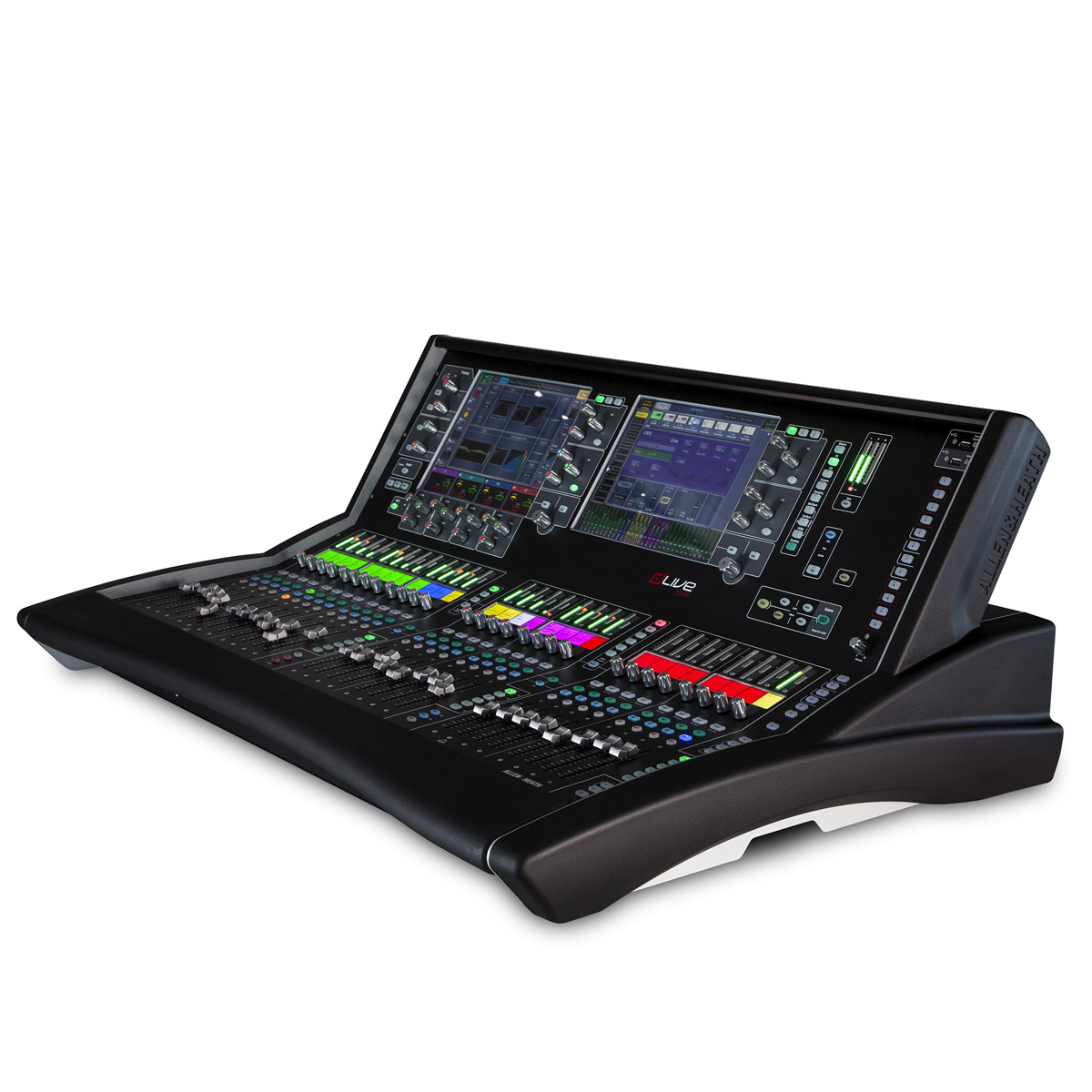 Mientras que muchas consolas digitales intentan recrear la experiencia de usar un mezclador analógico, dLive es un auténtico nativo digital, inspirado en nuestra familiaridad con los omnipresentes smartphones y tablets que todos usamos sin darnos cuenta. Las pantallas táctiles capacitivas de 12″ de las consolas dLive, ya sean individuales o dobles, resultan familiares al instante, respondiendo a cada toque, deslizamiento, arrastre y colocación exactamente como se espera. También se pueden configurar áreas de widgets personalizadas en las pantallas para controlar escenas, medidores, efectos y otros controles personalizados. La pantalla está enmarcada por un conjunto de controles giratorios de una sola función y un solo botón, lo que permite un control táctil creativo e inmediato sobre las funciones clave de procesamiento, en armonía con la información visual mostrada en pantalla. Los controles giratorios se han prototipado más de 20 veces para un agarre óptimo y un control preciso, y cuentan con retroiluminación RGB, con colores asignados a las funciones para una orientación visual instantánea.