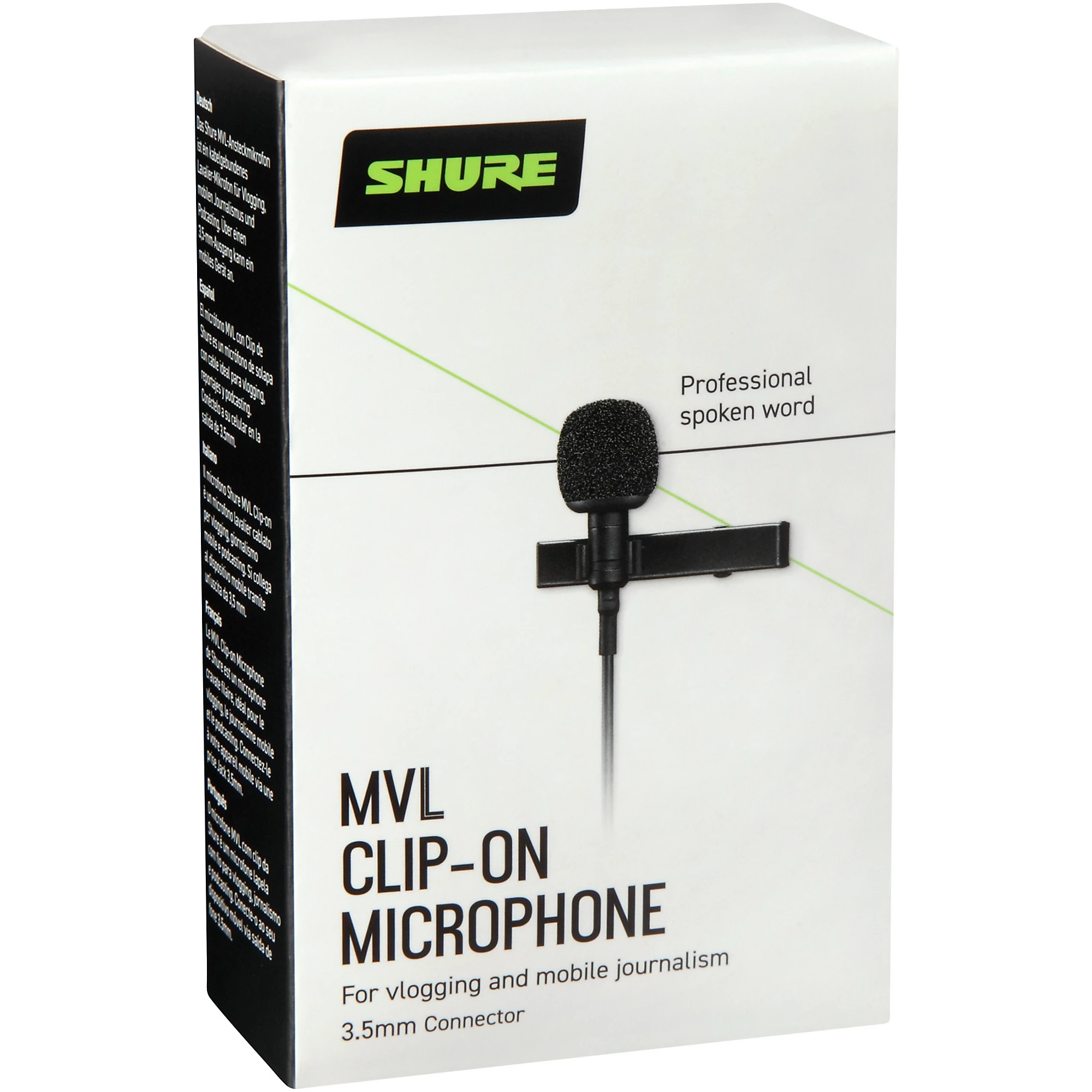 The MOTIV MVL Omnidirectional Condenser Lavalier Microphone is a quick and easy solution for clear audio inclose-mic digital speech recording applications. With a discrete footprint and a 1/8″ (3.5mm) TRRS connector, the MVL works with any mobile phone or tablet equipped with recording capabilities by plugging directly into the headphone jack. Record using the ShurePlus™ MOTIV iOS app or other digital recording platform to capture clear speech in interview, videography or public speaking environments, and share immediately via email or text. Designed and built to Shure technology standards, the durable MVL comes with a carrying pouch, windscreen and Tie-clip mount for mobile audio recordings that greatly surpass the quality of onboard phone and tablet microphones.